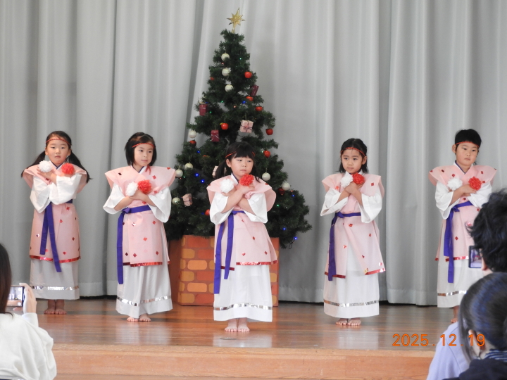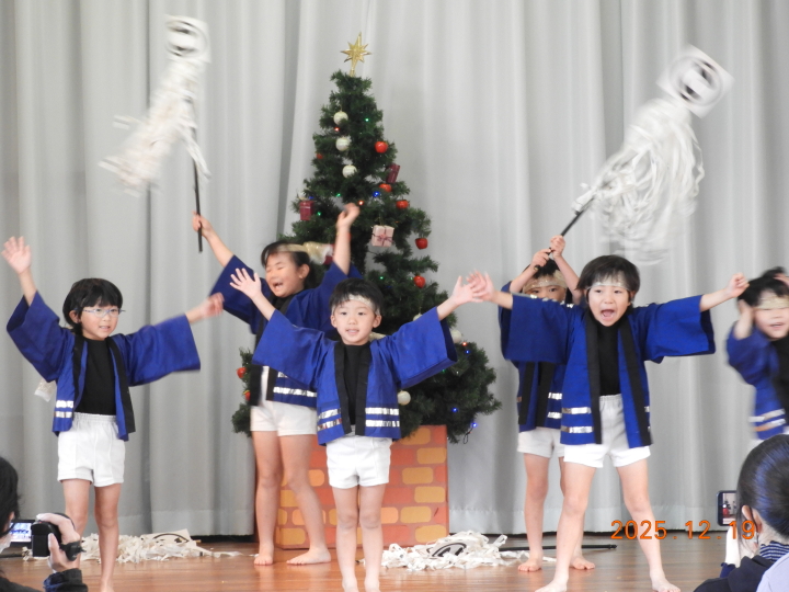 勇ましく踊ってお祝いしました。クリスマスリースを届けました