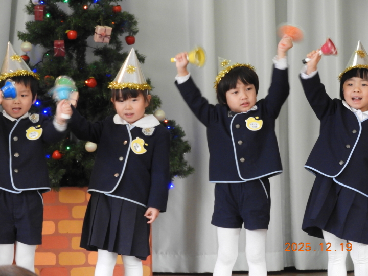 満3歳児さんも、上手に並んで歌を披露しました。年長、参観日